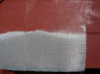 Aplicación Fibra de vidrio: Una vez seca. Solo al tacto, la capa de imprimación se procede a la colocación del tejido de fibra de vidrio encima de la junta de dilatación, sin que esté estirada totalmente (tal como se aprecia en el gráfico). Esta fibra de vidrio se adhiere a la imprimación anterior aplicándole encima una capa de caucho puro en el momento de su instalación.